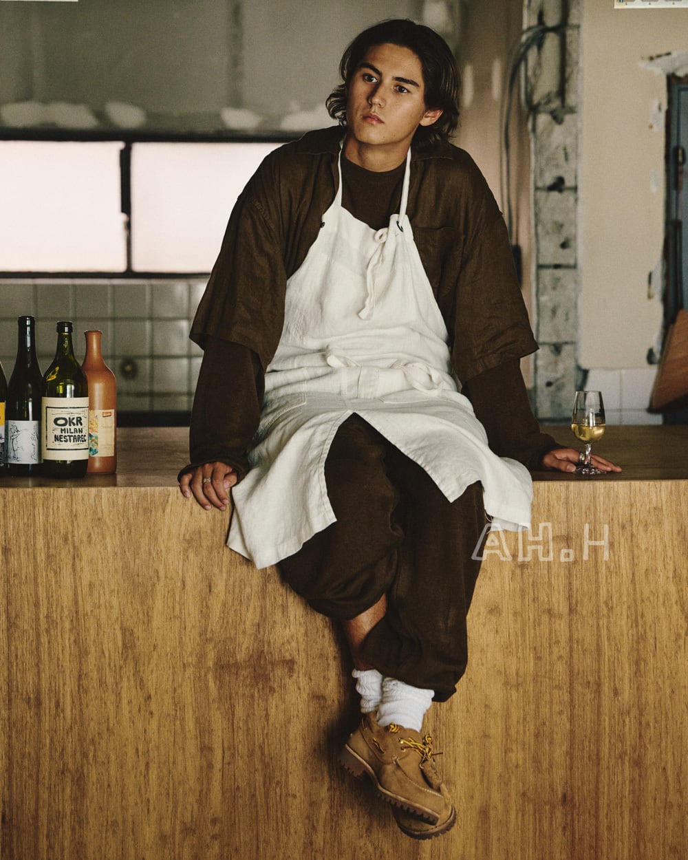〈TIMBERLAND〉で公開しているオフィシャルビジュアルでは「LIBERTIN」の紫藤さんがモデル。というのも、この靴にはワインのコルクが付いているから。なんで付けたのか。それはただ、ナチュラルワインが好きだから。本当は飲み終わったコルクを付けたかったのだけど、まぁそれは難しいということで。。。」(A.H)